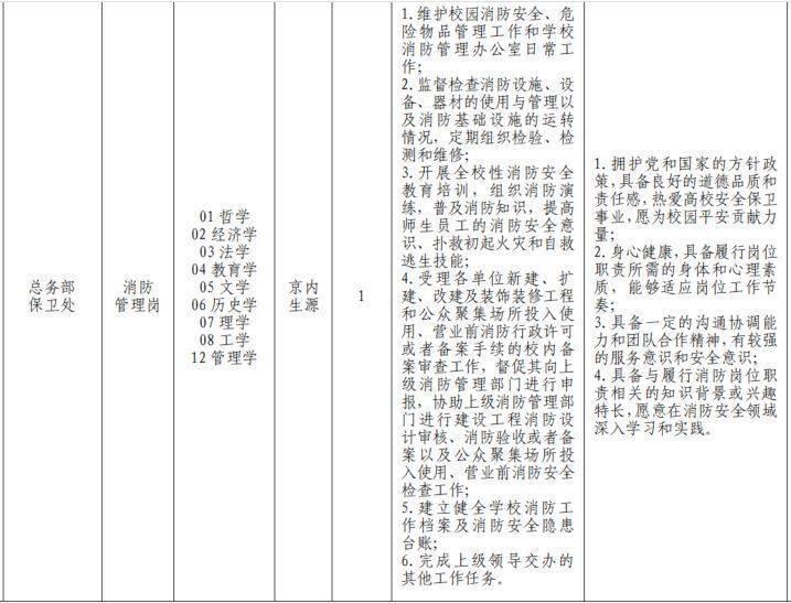 近日,北师大保卫处的一则招聘广告引发关注:消防管理岗招1人,有编制,从事校园消防安全等工作,要求是京内生源、应届硕士等。很多网友表示,该岗位是否为消防员、需不需要去救火等等。