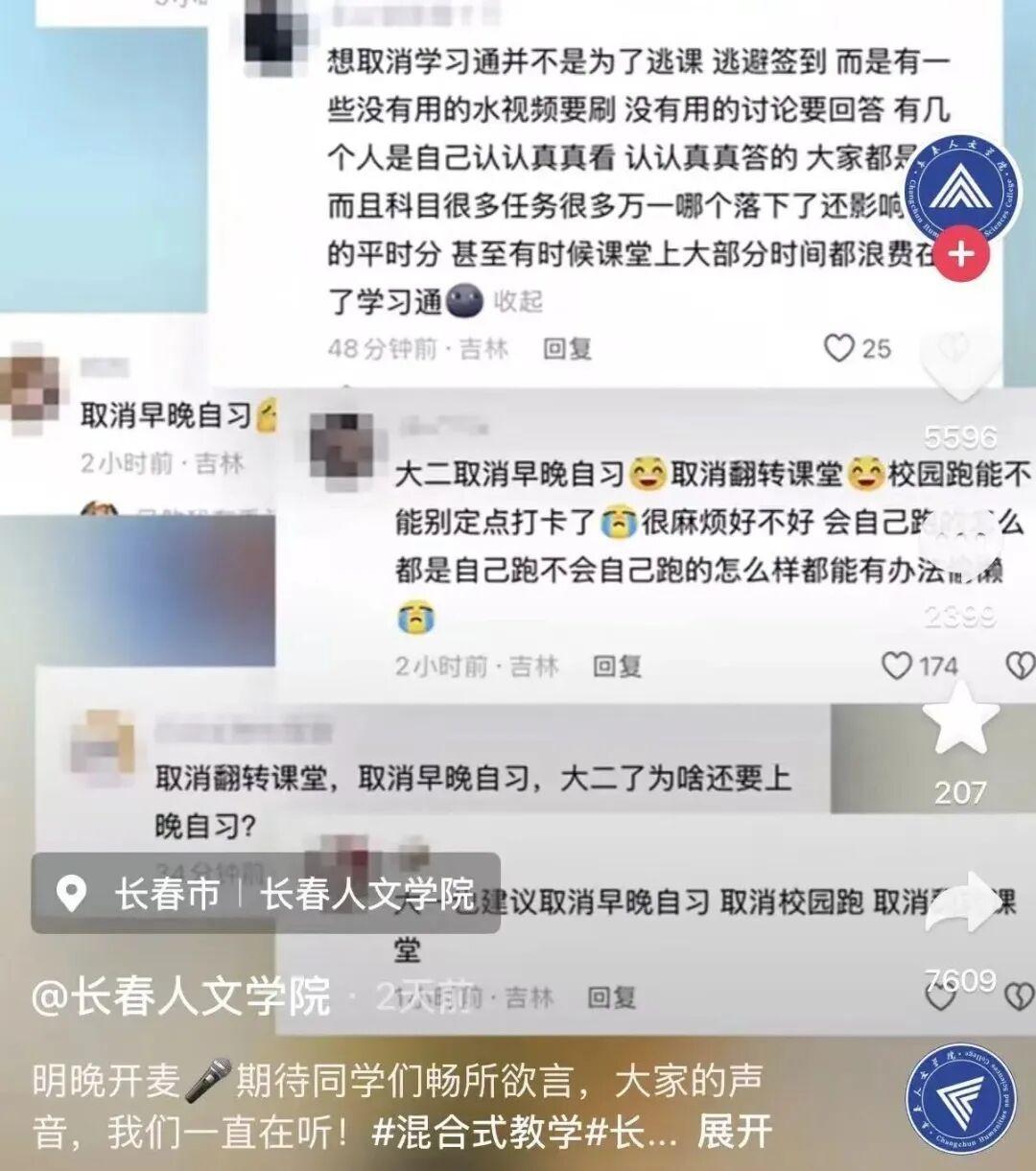 26日,该高校宣传部门工作人员称对此事知情,学校正在研究课堂授课模式,“这名学生是愿意学习的,可能压力比较大,目前学校也在研究对策,还要征求学生们意见。”记者注意到,学校官方账号同样表示,将在线下设置“开放麦”,供师生就“混合式课堂”进行讨论。