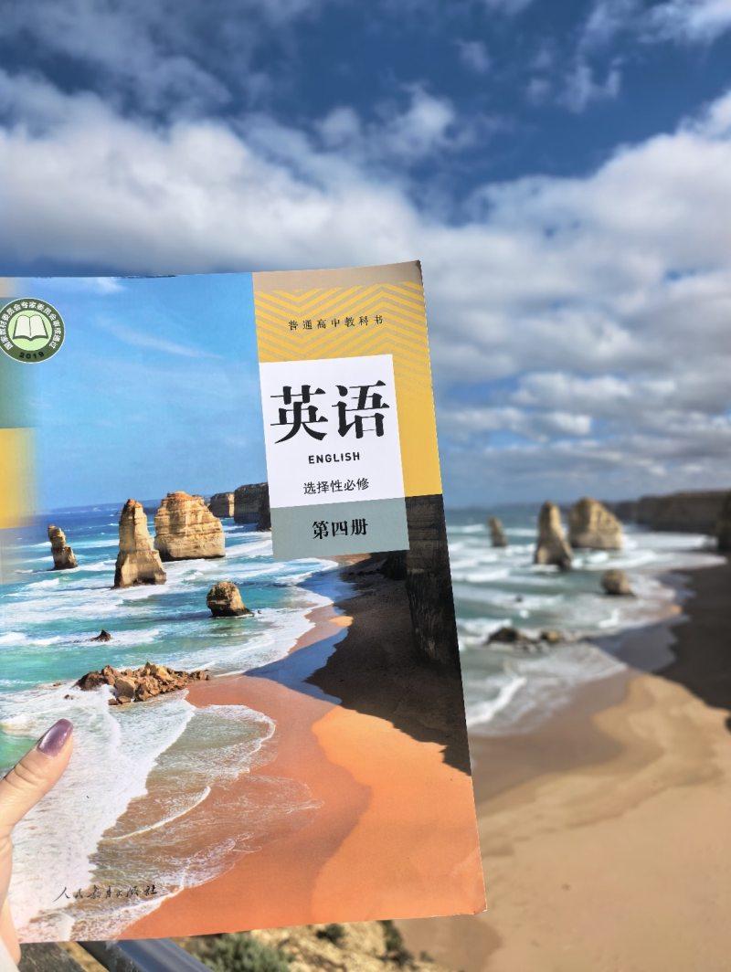 而在南半球,在悉尼留学的Arina则选择成为一名“留书者”。3月23日,她带着朋友从国内捎来的一本高中英语教材,来到澳大利亚大洋路标志性的十二门徒岩。课本封面的拍摄角度,与眼前实景几乎一模一样。打卡拍照后,Arina将教材放在了游客中心门口的立柱上。她坦言,最初参与这个接力略带“跟风”心态,但当真正站在课本封面的实景前,其实自己的内心深受触动,“从前坐在教室翻看这本课本时,我从未畅想过,长大后的自己,真的能亲身抵达这里。”