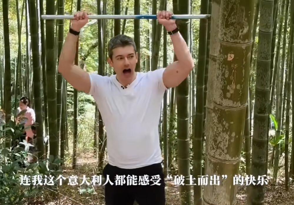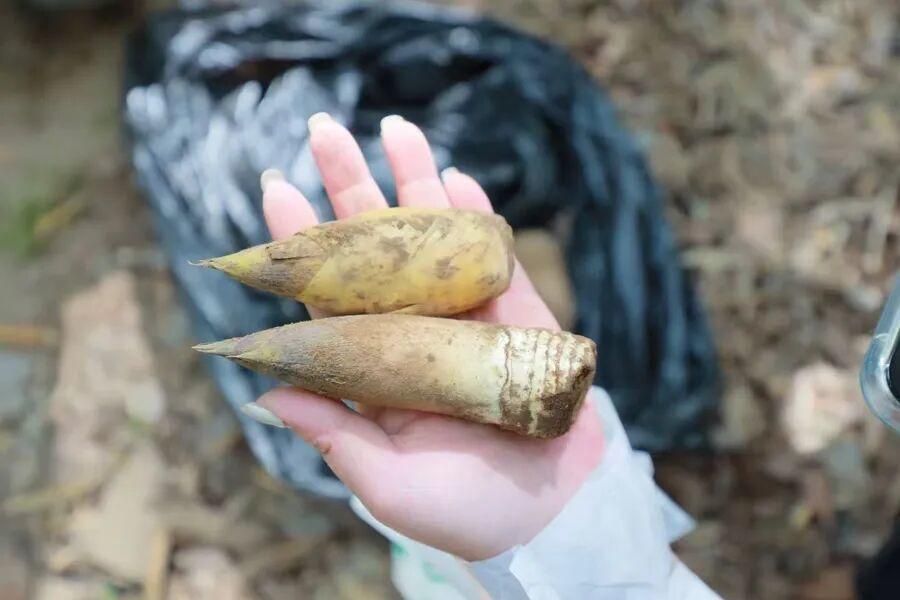 现场可见,竹林里除了随处可见的挖笋家庭,还有不少外国游客也加入其中,并在现场拍摄vlog记录下这段难忘的经历。“我们外国人以为只有熊猫才吃竹子,没想到中国人也吃!”一位身着粉色汉服的外国游客面对镜头,一边自拍,一边用流利的中文笑着说道。