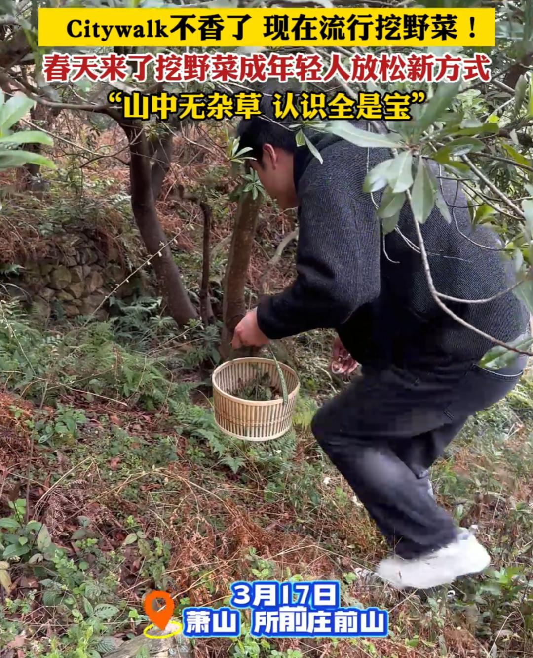 近几年,挖野菜成为了社媒平台的热门话题,相关话题标签浏览量超过2.6亿,讨论量达107万。自称“打野人”的年轻人们互相分享城郊隐藏的挖野菜地点,相约一起到河边、公园、田野挖草头、马兰头、荠菜……远离城市喧嚣环境,走进乡村挖野菜不仅成为了一种放松身心的娱乐方式,还演变成了结交新朋友的社交手段。