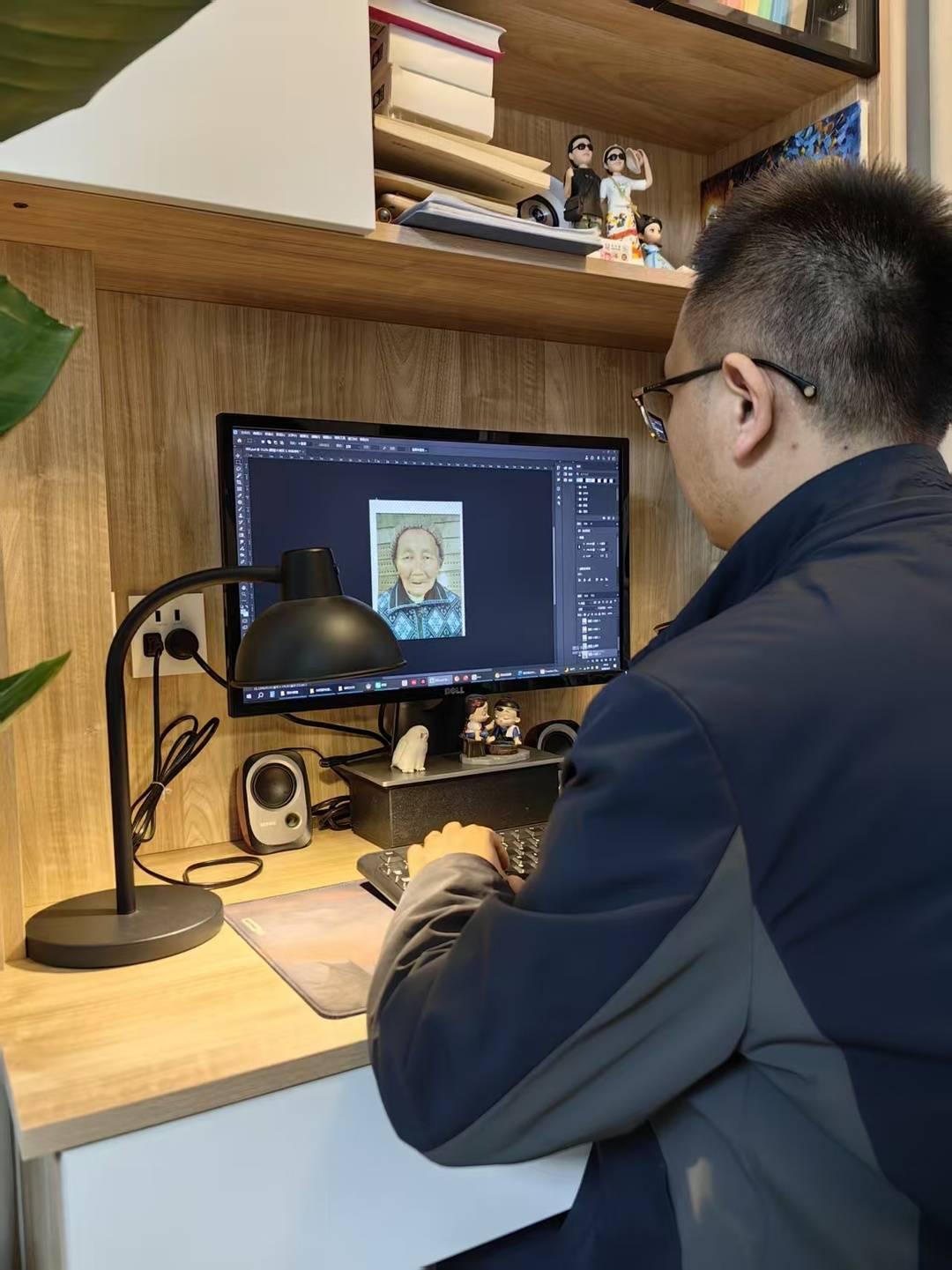 “我们不限制修改次数,直到家属真正满意。”他表示,简单照片一小时内可完成,复杂斑驳的旧照往往需要三四个小时。工作室奉行一个原则:真实还原。不刻意美化,不强行年轻,不抹去自然皱纹,不强行对称五官,保留逝者最真实的模样。