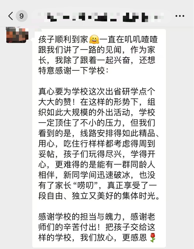 “这次600多人跨省长沙研学,规模大、行程密,组织起来真的太不容易了!”袁女士在朋友圈写道,“我身边同事听说了都特别羡慕,说我们学校能带孩子走出校园、跨省研学,一般学校根本做不到,这份魄力和用心,真的让人敬佩!”