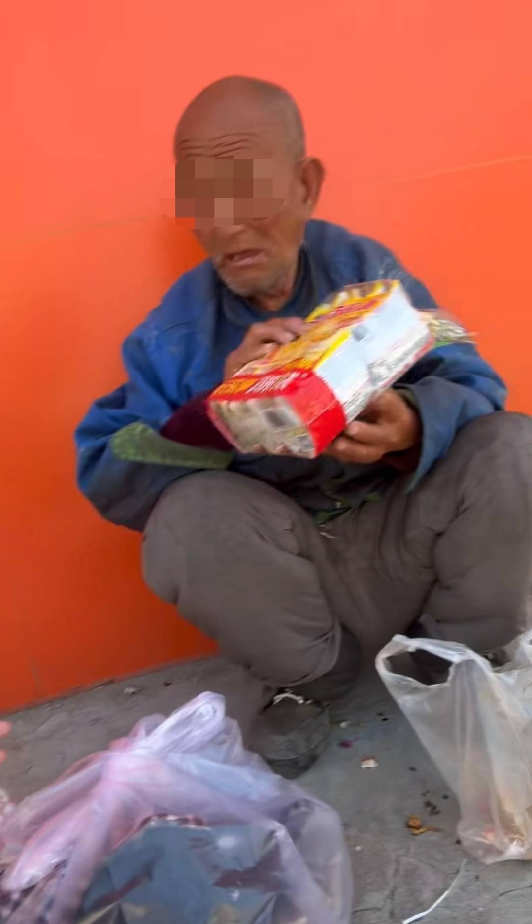 “当时他蹲在路边,眼神空空的,看起来特别饿”。小刘回忆说,他第一次在校门口看见老人时,是自己上高一的时候。