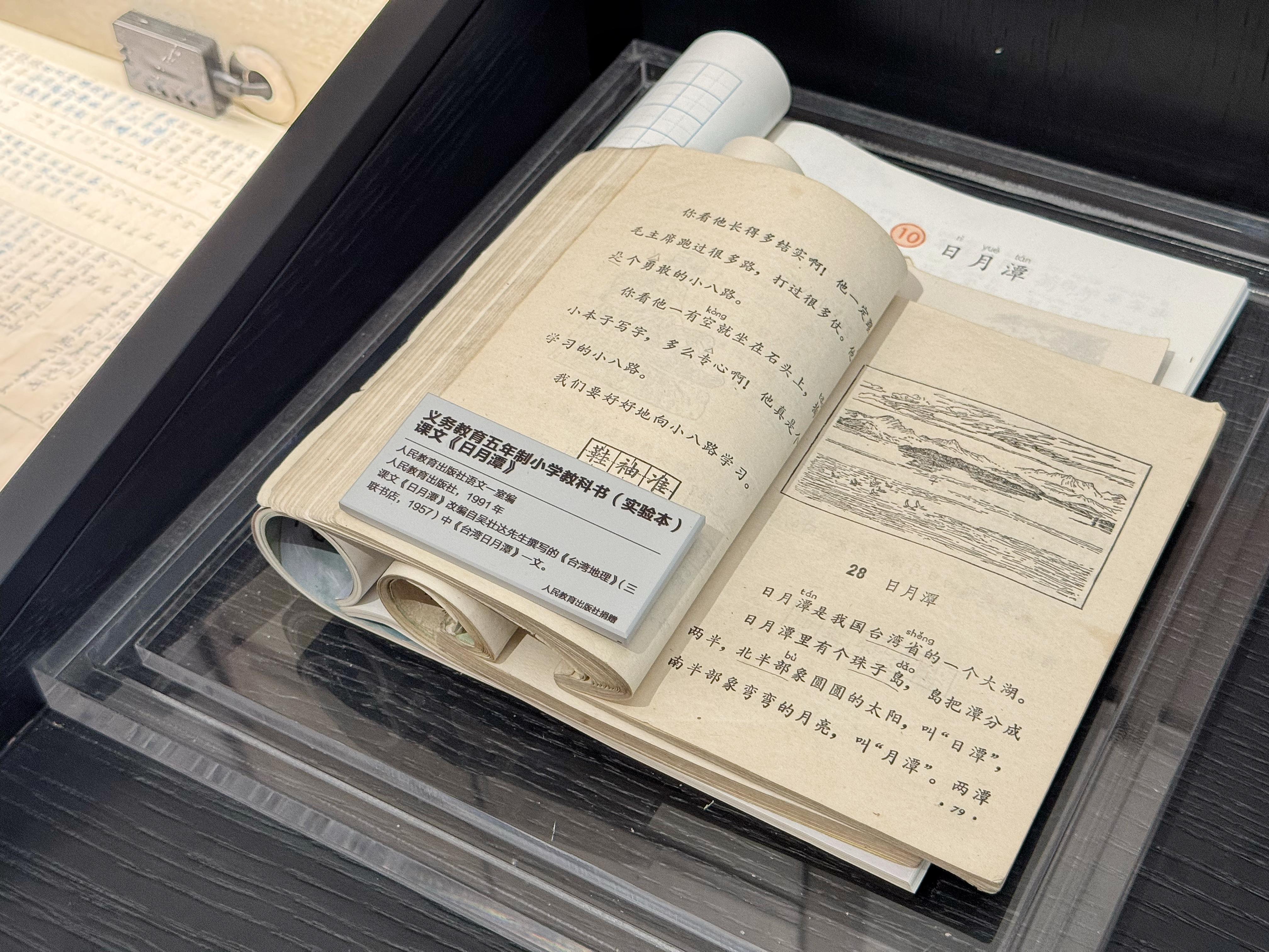 如今走进中山大学校史馆一楼,便能找到3本不同年代的小学语文教科书,每本都翻开在《日月潭》那一页。