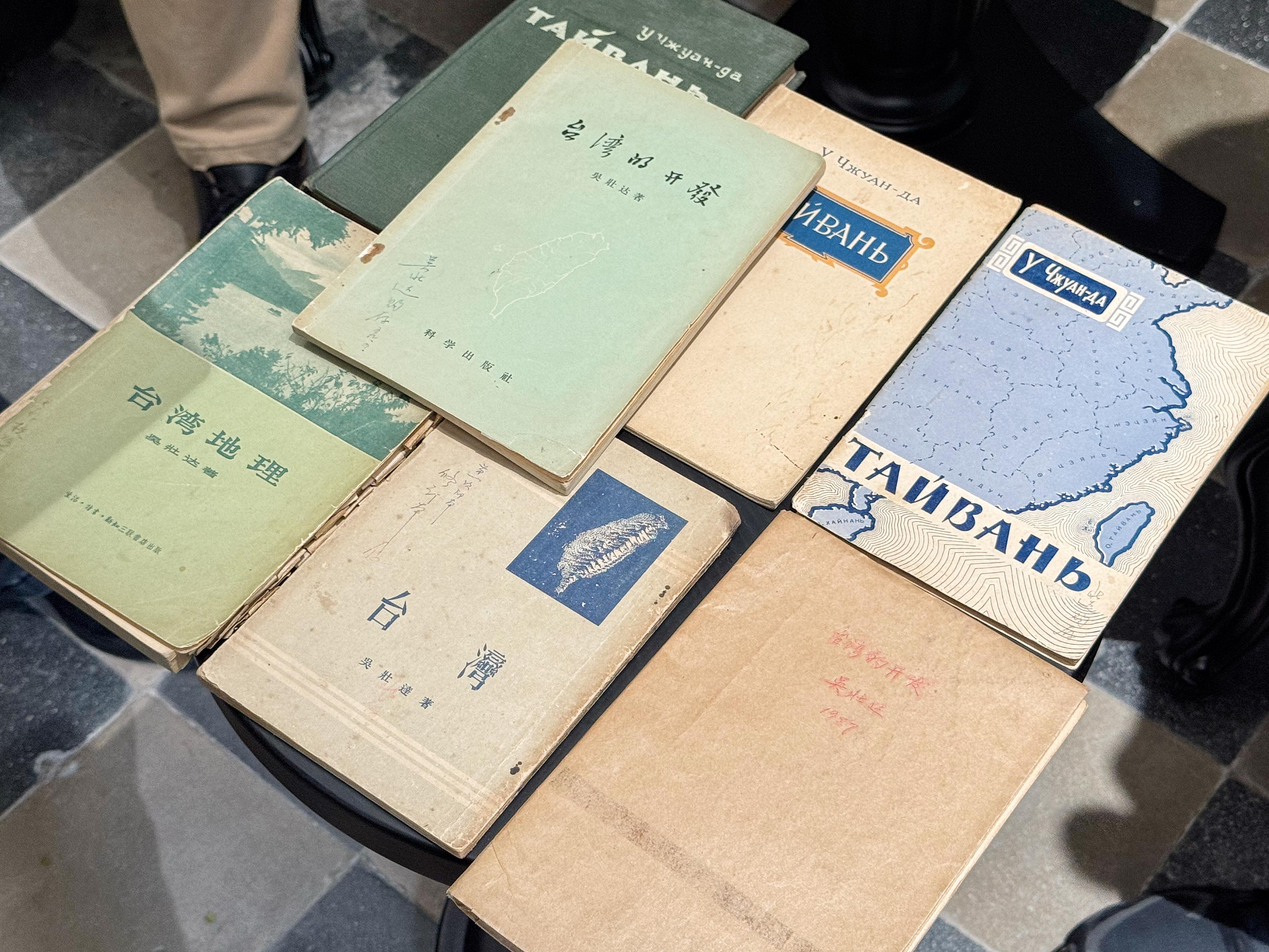 “这本是俄文译本的《台湾地理》,非常宝贵;这是《台湾的开发》手稿,是新中国成立后第一本系统全面记载台湾开发历史与地理的专著;这本《台湾地理》封面就是日月潭,我母亲还在扉页上标注了不同版本……”
