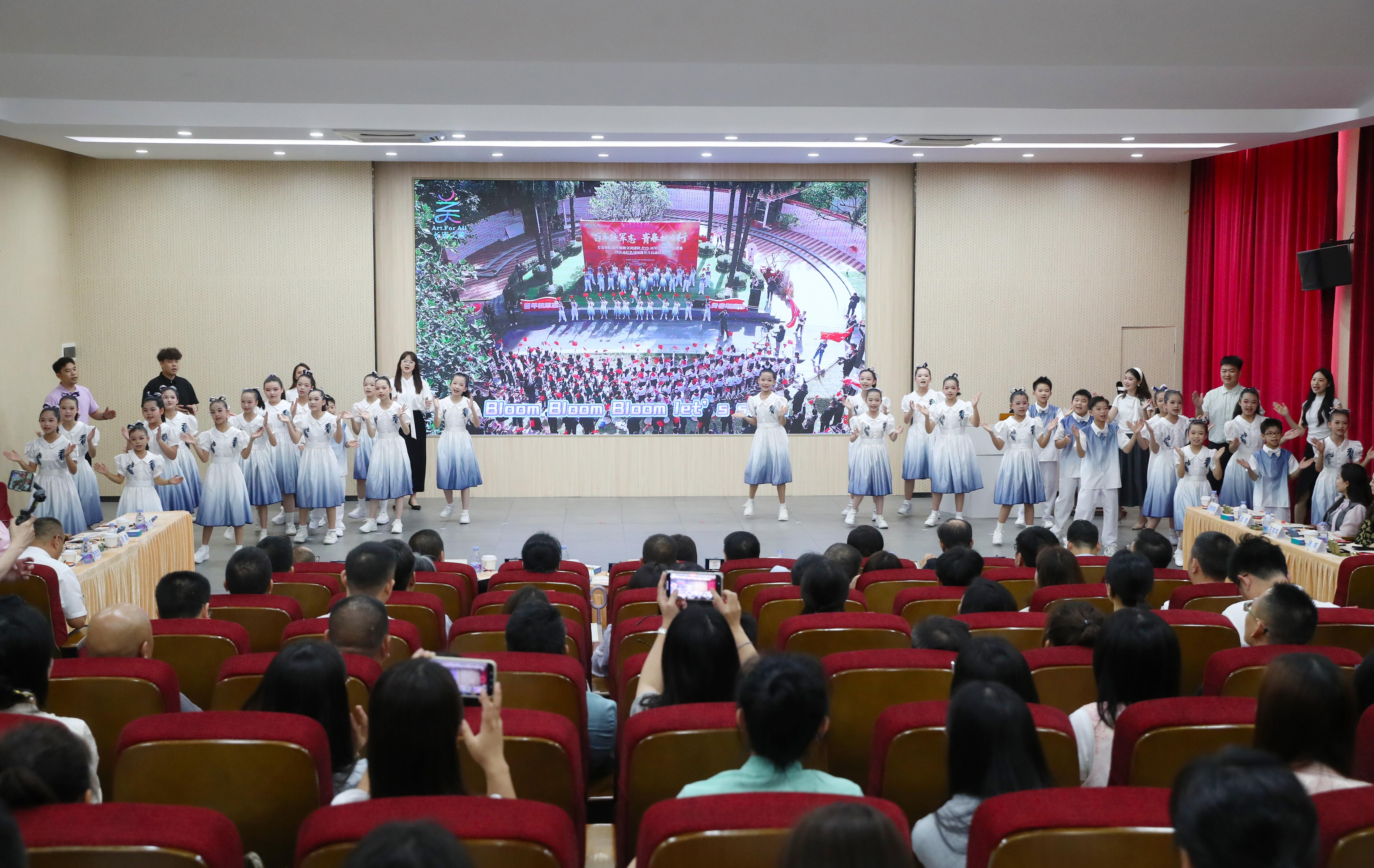 活动现场还发布了美育主题曲《花开长安》MV并由师生现场演唱。据介绍,该作品由长安本土一线教师原创完成,从词曲创作到录制演绎均由长安镇师生亲身参与,歌颂长安新时代风貌,成为区域美育实践的重要文化表达。