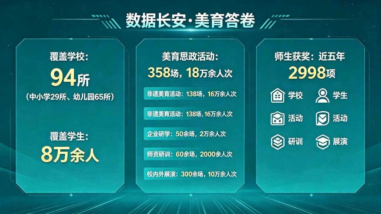 记者了解到,近年来长安镇持续推进美育体系建设,开展美育思政主题活动超过350场,覆盖人群达18万余人次。近五年长安师生在国家、省、市级艺术赛事中获总计近3000项,形成“小莲花艺术团”等具有区域辨识度的品牌项目,逐步构建起具有示范意义的“长安美育模式”。