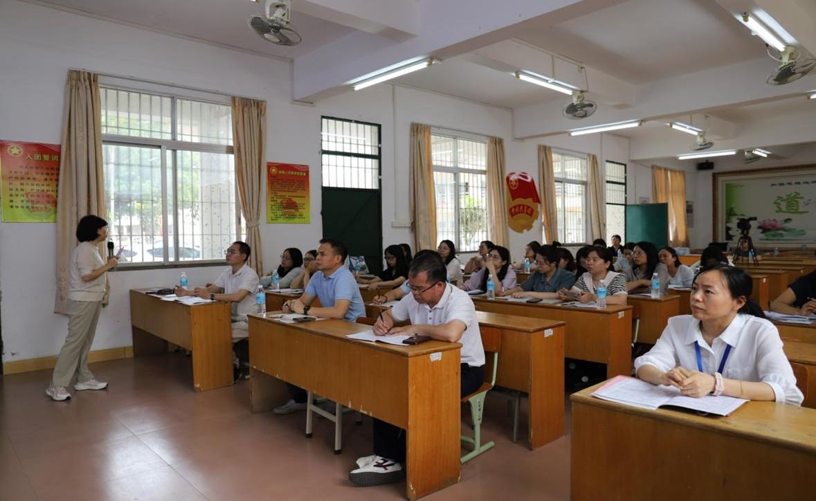 华南师范大学外国语言文化学院教授黄丽燕对各组汇报进行专业点评,肯定研讨实效并提出优化建议,强调要坚持目标导向与问题导向,强化协同联动,推动优质教研资源下沉,助力粤东粤西粤北地区与县域高中外语教育质量提升。