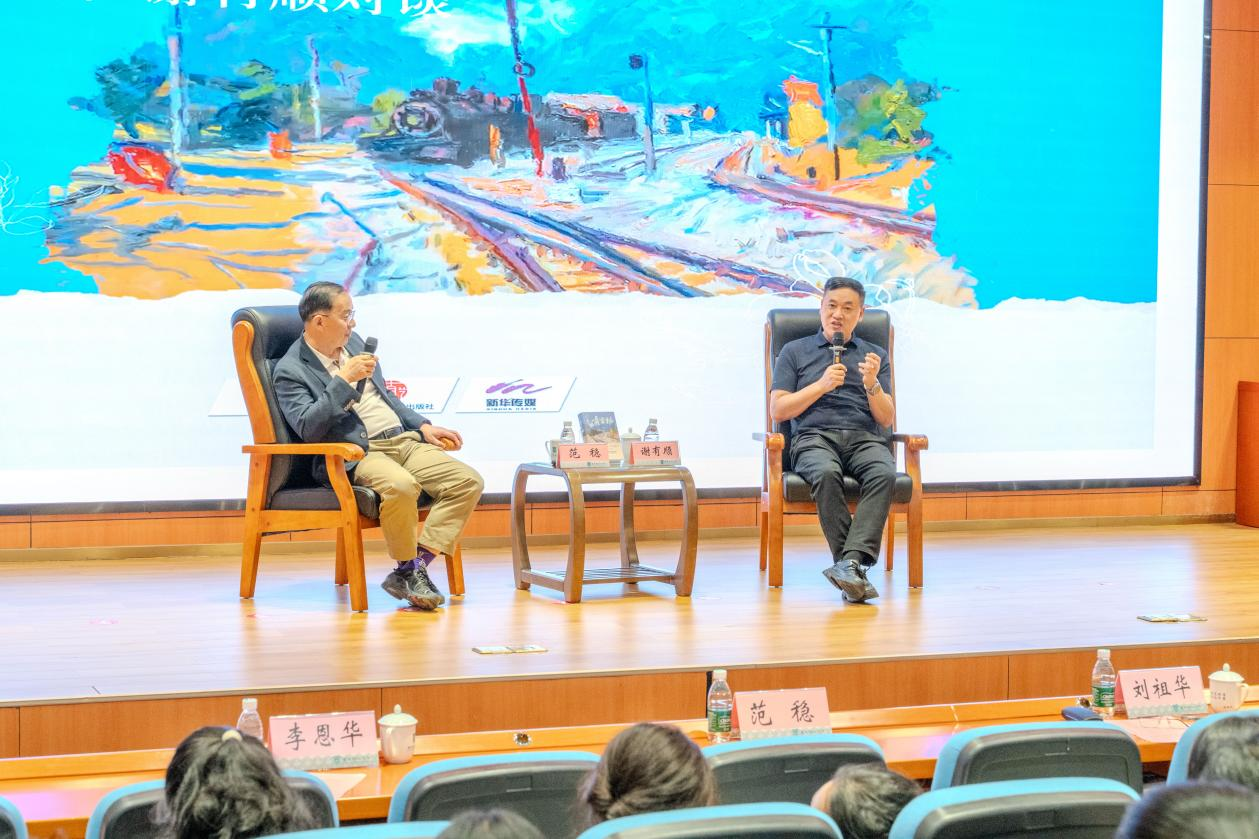 名家对谈环节,范稳与谢有顺围绕“家族、时代、命运”主题展开深入交流。范稳结合长篇小说《青云梯》的创作经历,分享了“发现式写作”理念,强调人类独特情感的不可替代性。谢有顺提出“文学是一种能力”,强调文学应避免标签化,关注个体命运,鼓励青年通过阅读提升认知与判断力。两人一致认为,青年应主动走出书斋,深入生活,坚持独立思考,关注文化传承,勇于创新并承担社会责任。