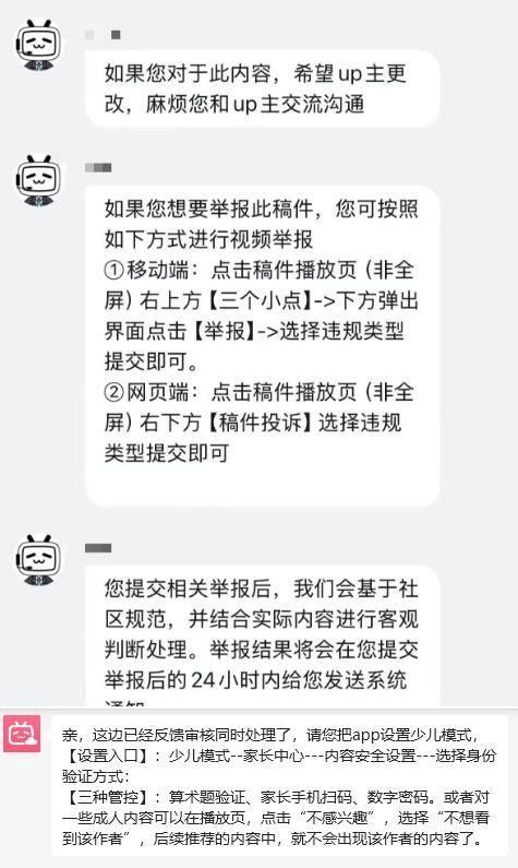 同时,云视听小电视客服人员表示,已将相关问题反馈处理,建议家长开启少儿模式,若遇到不适宜儿童观看的内容,可点击“不感兴趣”并选择“不想看到该作者”,后续平台推荐内容中,将不再出现该作者的相关作品。