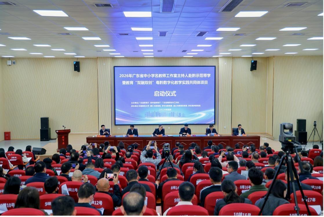 日前,2026年广东省中小学名教师工作室主持人赴黔示范带学暨教育“双融双创”粤黔数字化教学实践共同体项目启动仪式在贵州省铜仁市举行。本次活动由广东省教育厅、贵州省教育厅、广东省粤黔协作工作队主办,华南师范大学组织实施,聚焦东西部教育协作,以名师示范引领带动黔地教师专业成长,助力贵州基础教育高质量发展。