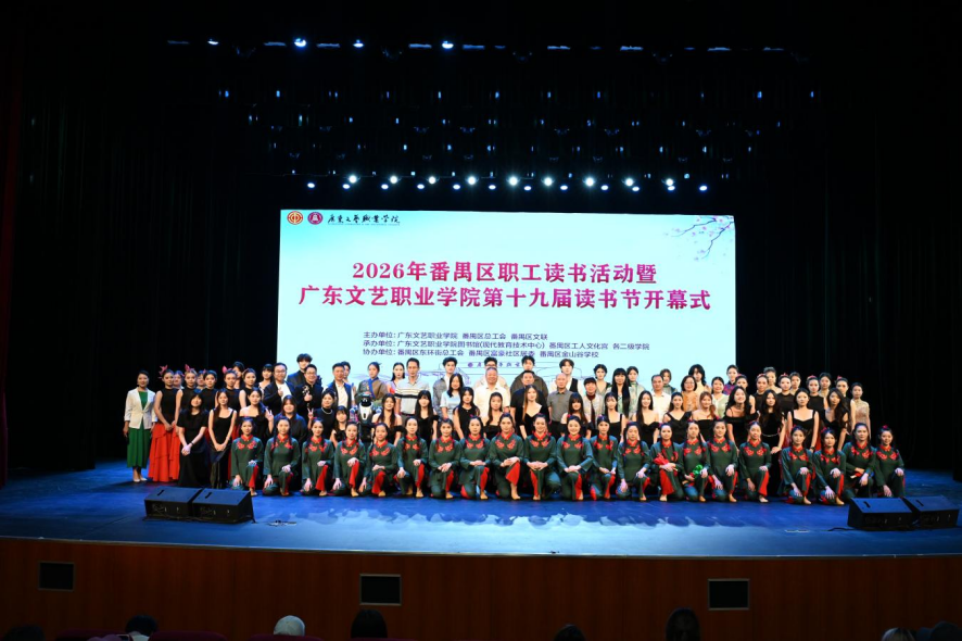 4月23日,在第29个世界读书日与全国首个“全民阅读活动周”之际,广东文艺职业学院联合番禺区总工会、番禺区文联,共同主办“悦读圆梦·禺阅书香”2026年番禺区职工读书活动暨学院第十九届读书节开幕式。学校师生、企业职工和社区群众共计600余人参与活动。现场,双方正式缔结“会校共建”书香联盟,探索校地协同推进全民阅读的长效机制。