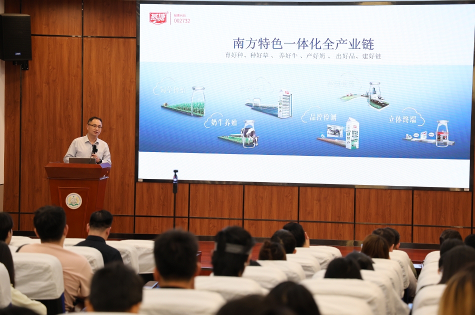 主题分享环节,三位行业大咖结合自身深耕产业的实战经验,为毕业生带来前沿洞察与职业指引。燕塘乳业牧业事业部总经理吴汉葵,佛山市三水区乐家庄养殖有限公司董事长邓秀芝,陈记顺和董事长、广东省牛产业发展促进会会长陈晓申,分别围绕乳品消费升级、产业人才能力要求、畜禽食材品牌化发展作专题分享,深度剖析广东农牧产业转型升级趋势,为毕业生就业择业提供了多维度的行业视角。